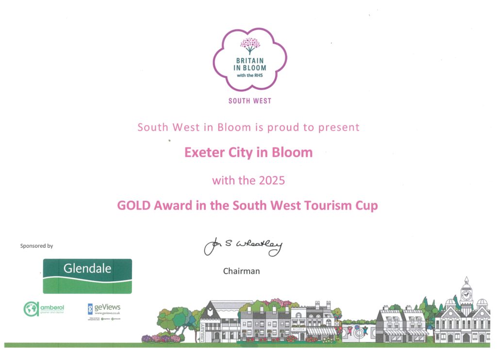 “This Gold Award is a celebration of Exeter’s creativity, collaboration, and care for its environment,” said Nicola Wheeler, CEO of InExeter. “Our city centre planting, funded through the business levy, is grown locally from seed or cuttings and maintained sustainably with harvested rainwater. It’s a true community effort that makes Exeter welcoming and vibrant all year round.”
