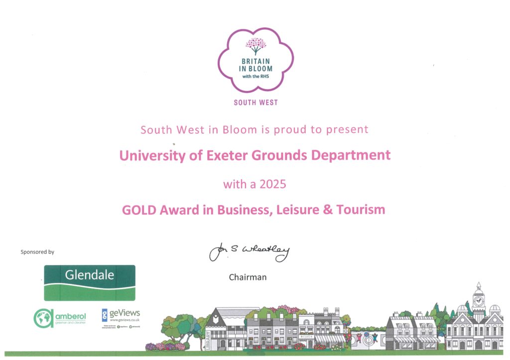 The University’s long-standing expertise in horticulture and environmental responsibility has been recognised with a double Gold award at this year’s Britain in Bloom South West Awards.