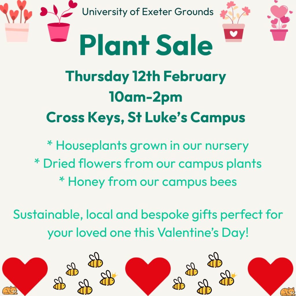 Our next plant sale is on Thursday 12th February from 10am to 2pm on our St Luke’s Campus; in the Cross Keys Cafe, Exeter, EX1 2LU, What3Words ///noses.slows.yard