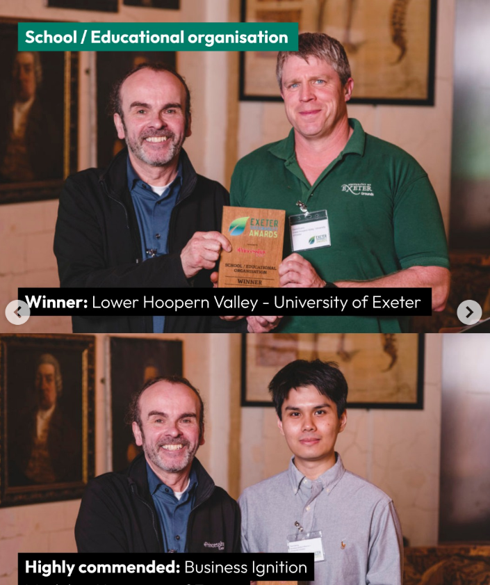 We are delighted to announce that Lower Hoopern Valley – University of Exeter, led by Dave Evans, Head of Grounds, has won the School/Educational Organisation category at this year’s Exeter Sustainability Awards.