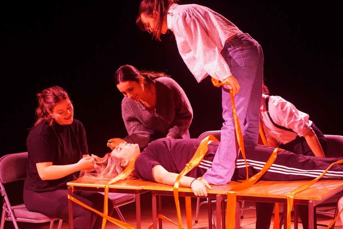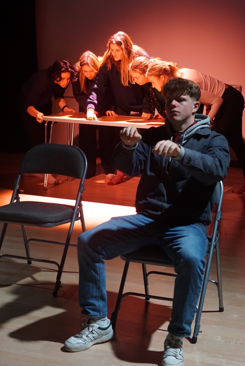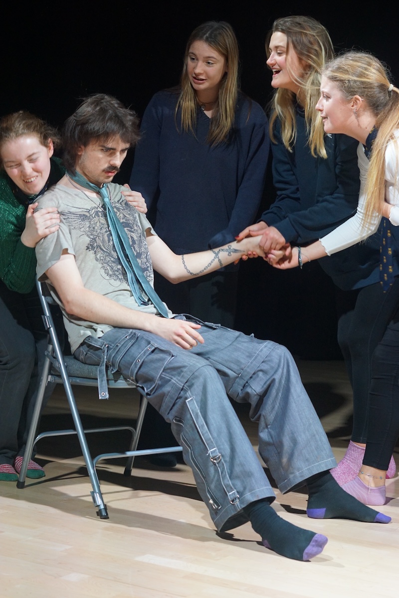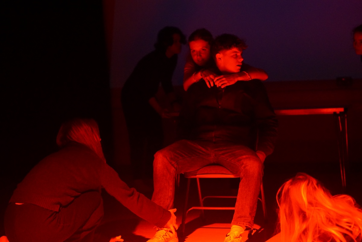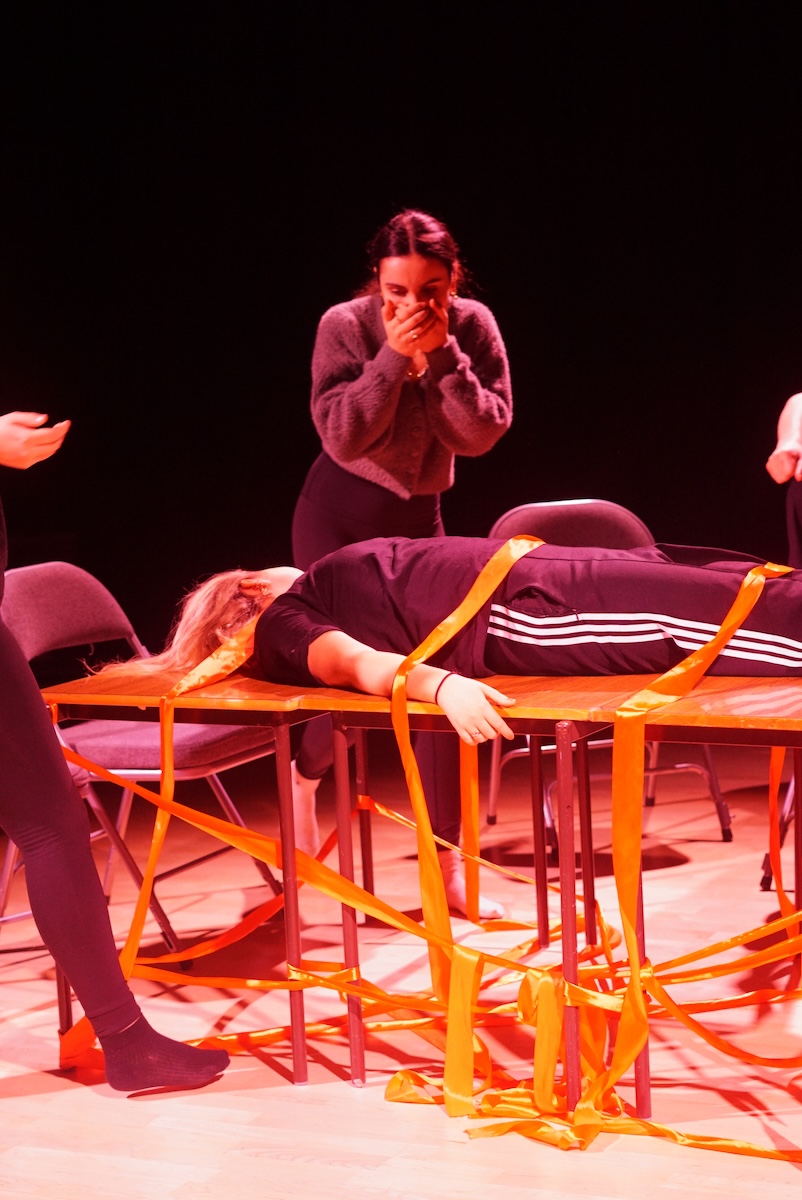 23 November 2023This new Drama module involved the students working in small companies to co-create new pieces of performance, led by tutors Erin Walcon and Caleb Lee. The performances shown in the photo gallery below took place in our studios in the Alexander Building and at Roborough Studios.