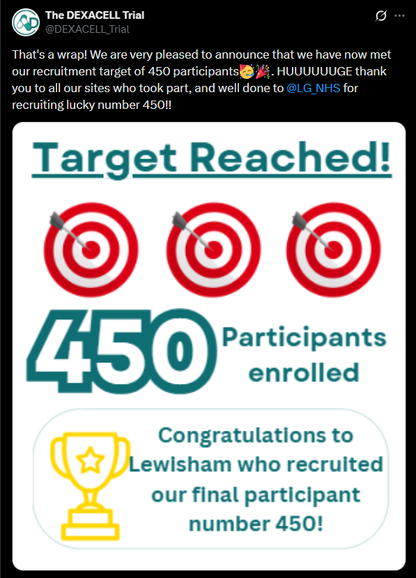DEXACELL is funded by the NIHR-HTA, sponsored by North Bristol NHS Trust, and managed by the Exeter Clinical Trials Unit. The views expressed on this site are those of the author(s) and not necessarily those of the sponsor or funders.