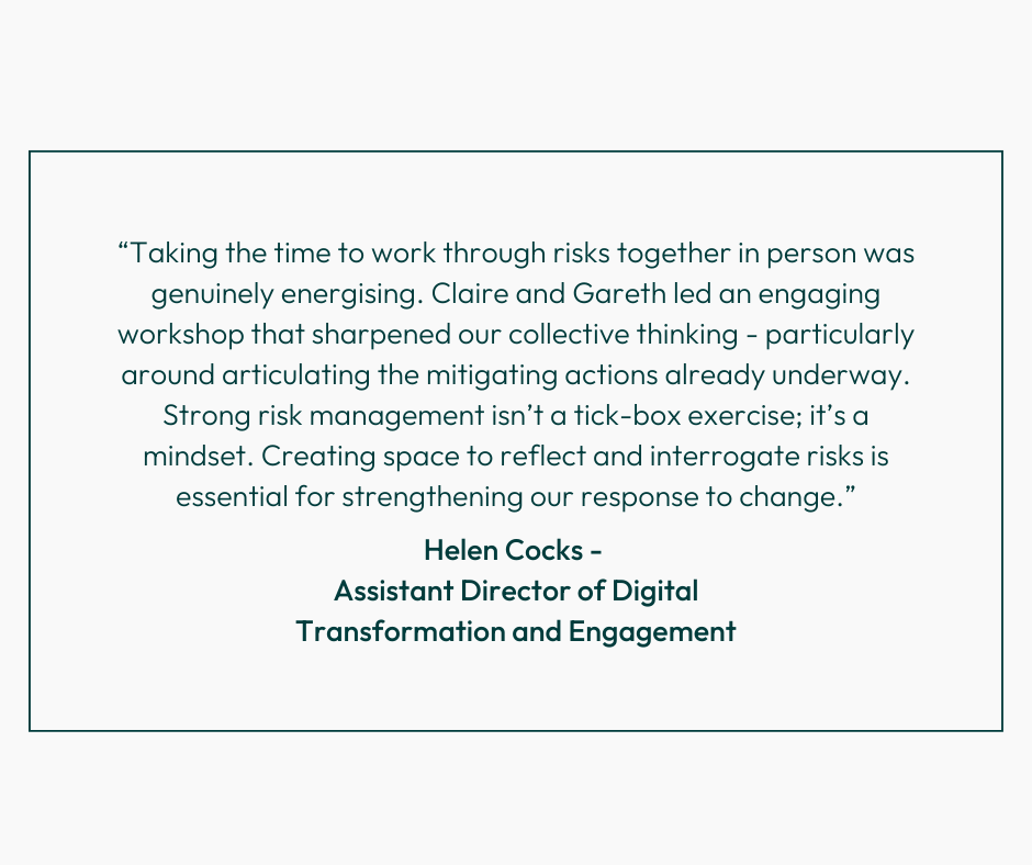 To put this approach into practice, we brought together the Digital Leadership Team for a half-day, in-person workshop in August. The aim was simple: rewrite the risk register collaboratively.