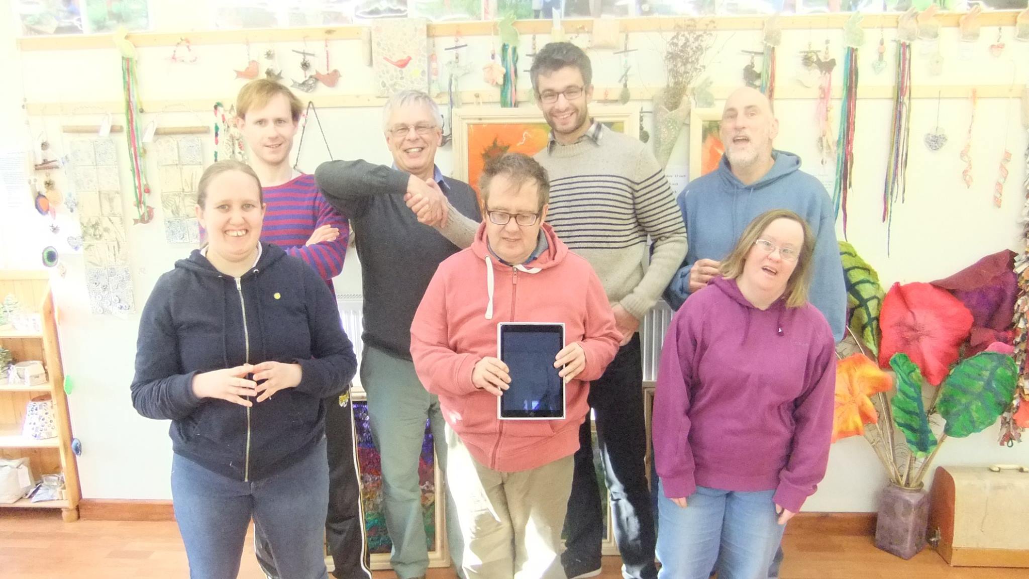 5 December 2016This picture was taken on a recent visit to Stallcombe House, where EXDX team member Dr. Chris Elphick gave the residents their very own iPad to use. He is pictured shaking hands with Chris Thistle, the general manager of Stallcombe. Having this iPad will enable the residents to continue to make the stop-motion videos, as seen on the ‘Film Workshops’ section of this website. In addition to this, residents will be able to explore the use of the Somantics and ReacTickles apps we have also started to use in our more recent workshops. Dr. Elphick is looking forward to attending the Stallcombe Christmas party on Sunday the 11th of December.