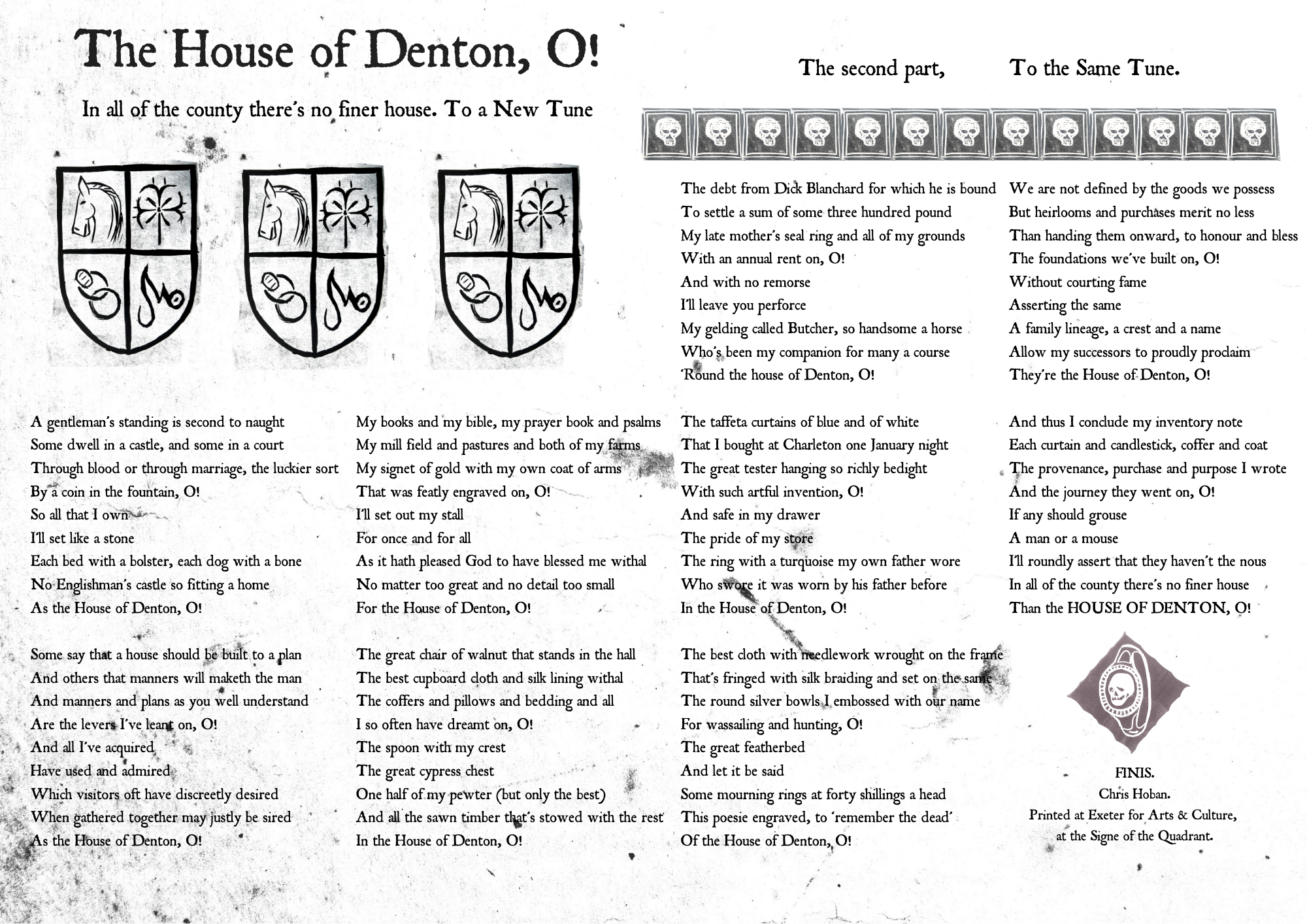 After the workshop Laura used Chris’ song lyrics and prints produced at the workshop to create an Arts and Culture ballad – The House of Denton, O!