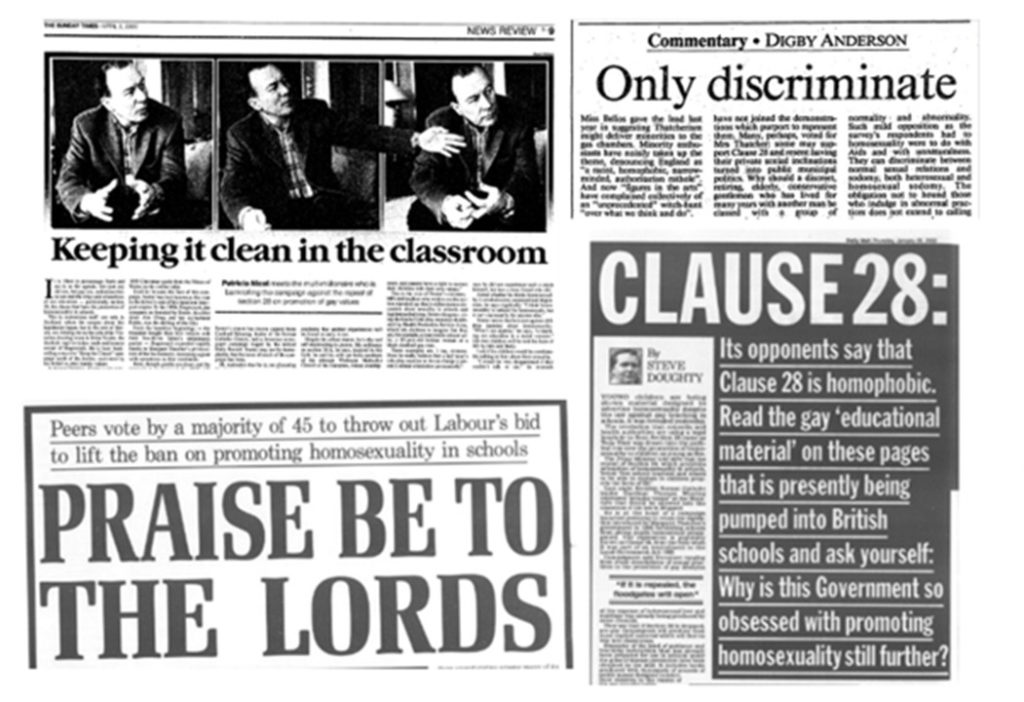 Montage of historic Section 28 newspaper articles