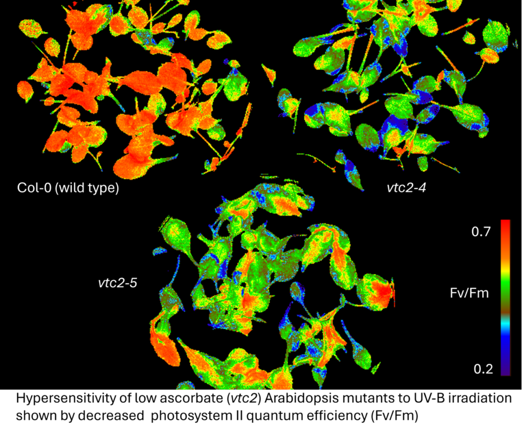 Ascorbate (vitamin C) is a multifunctional antioxidant and a chaperone for 2-oxoglutarate-dependent dioxygenase enzymes. We have a long-term interest in understanding ascorbate metabolism and functions in plants and algae. Current work is focussed on GDP-L-galactose phosphorylase, the rate-controlling biosynthetic enzyme, particularly translational control of its expression by an upstream open reading frame (uORF) and transcriptional control by light in Arabidopsis thaliana and tomato. Fungi make an ascorbate analogue, erythroascorbate, and we are investigating its functions in plant pathogenic fungi.