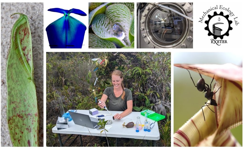 We use an interdisciplinary approach to study how plants deal with the physics in their live. We want to understand how plants deal with physical challenges such as wind, rain and hail, and how some plants take advantage of physical principles to capture or repel insects or direct water across leaf surfaces. We work a lot with carnivorous pitcher plants because they are an excellent model to study the function, development and evolution of plant surface adaptations and their ecological implications. We use a very broad range of experimental, analytical and theoretical approaches including field and lab experiments, biomechanics, bioimaging, molecular biology and transcriptomics, analytical chemistry and finite element modelling.