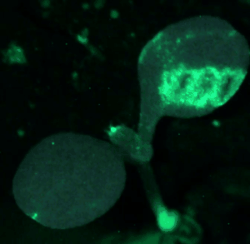 Amber is working to understand how several different plant signalling pathways converge to guide exocytosis to sites of pathogen response. This requires a combination of microfabrication techniques, laser-scanning and spinning disk confocal microscopy, as well as molecular biology to generate Arabidopsis thaliana lines for imaging in mutant backgrounds.