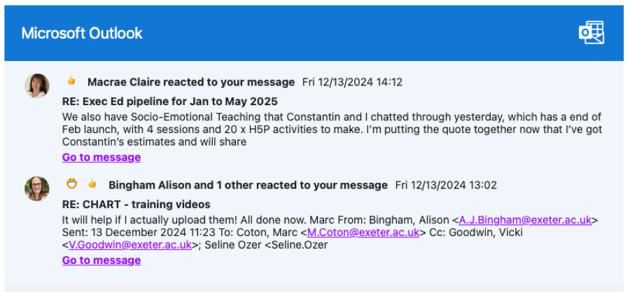 I also got 8 reactions (rather than emails back) which is better for the environment because I get the Outlook weekly reactions digest instead.