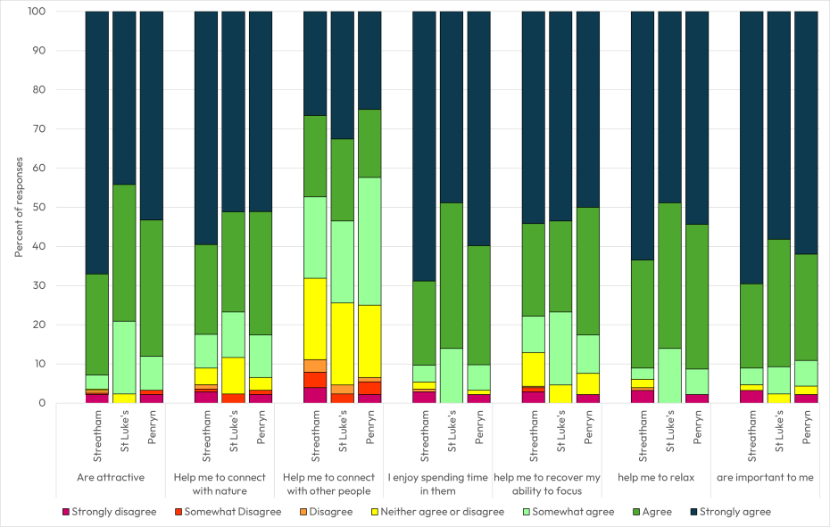 Responses to the survey question ‘The University campuses have green spaces that…’