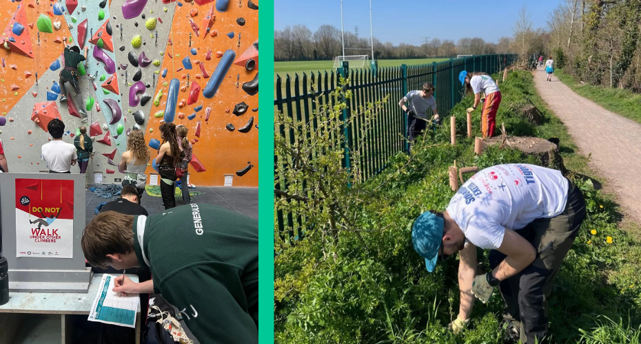 Right: 25 members of the university Climbing, Cycling, and Football Clubs helped to plant trees at Duckes Meadow